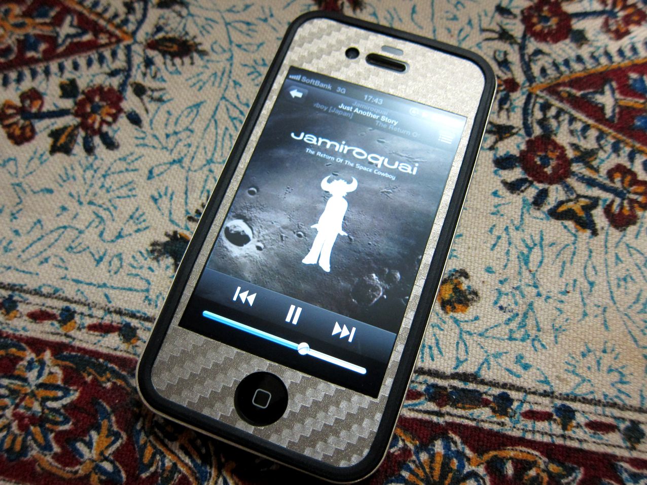 画面の保護シールを光沢・反射の無いものにして、カーボン風の柄のシールをその上から貼って、枠に似た色のバンパーというものを付けて